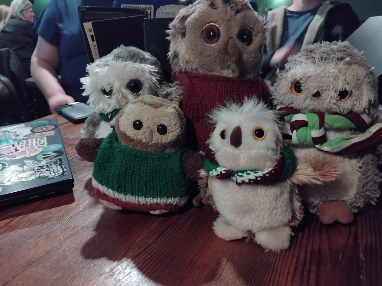 Idris the Dragon (middle) is our stealable Mascot. He replaced our previous stealable mascots in 2014. Our president is in charge of looking after him normally, but at rally's you might find him with any of our members. Idris' chums; Mary the Badger (left) and James the Sheep (right) also come along to events but are non-stealable (they're just too precious!). They are looked after by out vice-president and secretary. We also have Anwen the Dragon and Pterri the Pterodactyl, they are non-stealable for the time being. They are looked after by our quartermaster and treasurer. All our mascots wear club neckers in miniature form. |