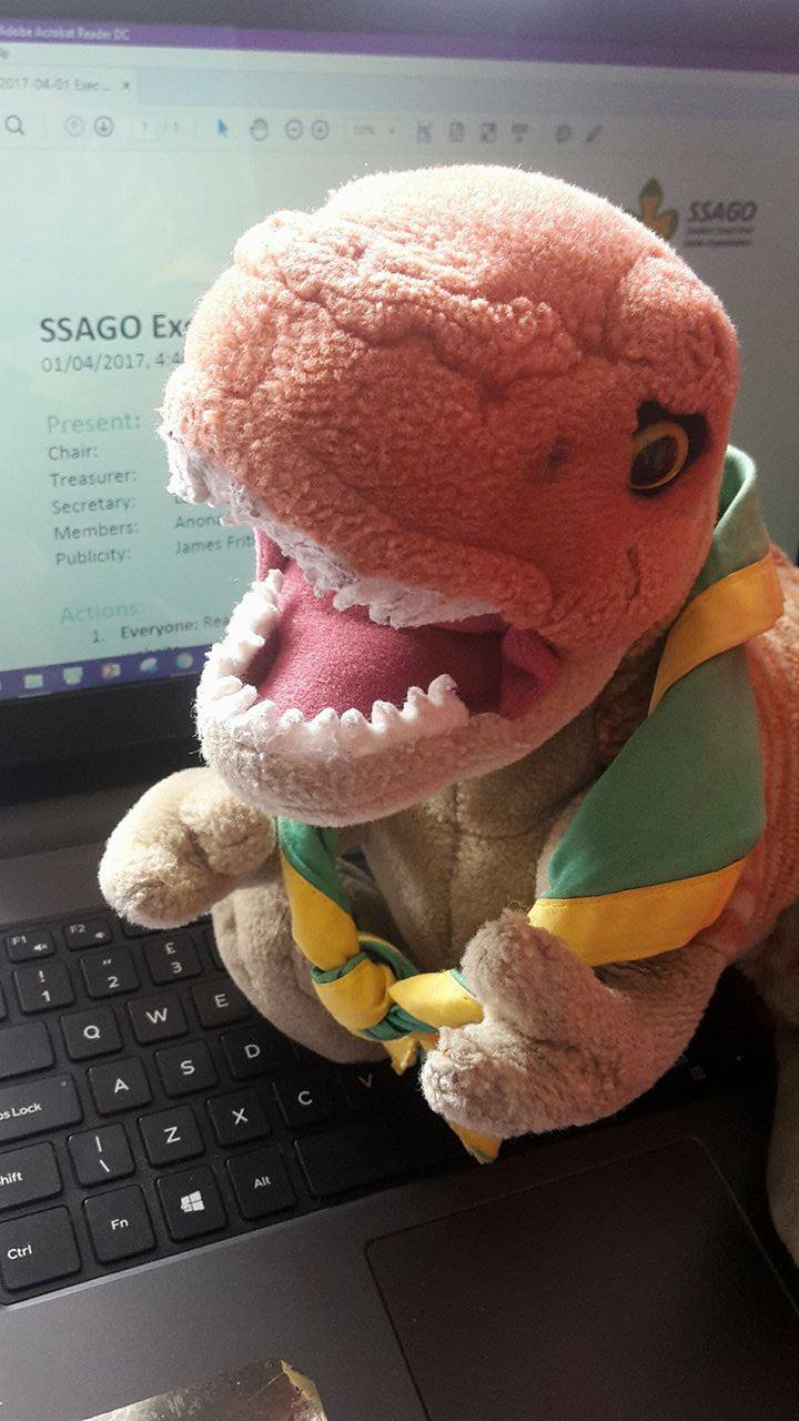 | Rex | Rawr! Rex O'Saurus, the Secretary’s mascot, is a t-rex; despite his short arms he loves to keep a close eye on minutes, email and policy. Beware of his sharp teeth! | Secretary (Ed Knight) | SSAGO Exec | Non-stealable | ![]() |