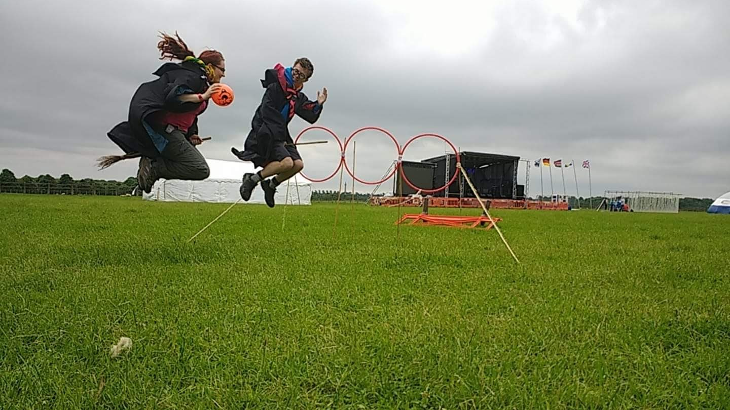 Sunday morning we said farewell to James but hello to the lovely warm weather, and welcomed Laura back from her night shift of delivering babies! Due to the flight attempts of the Gazebo in the wind the previous day, James took it back with him causing some very hot and slightly sunburnt SSAGOers, so we cooled down with a water fight! Some very enthusiastic Scouts and Cubs played multiple games of Quidditch in a row before taking a break to collapse in a sweaty, but excitable heap.