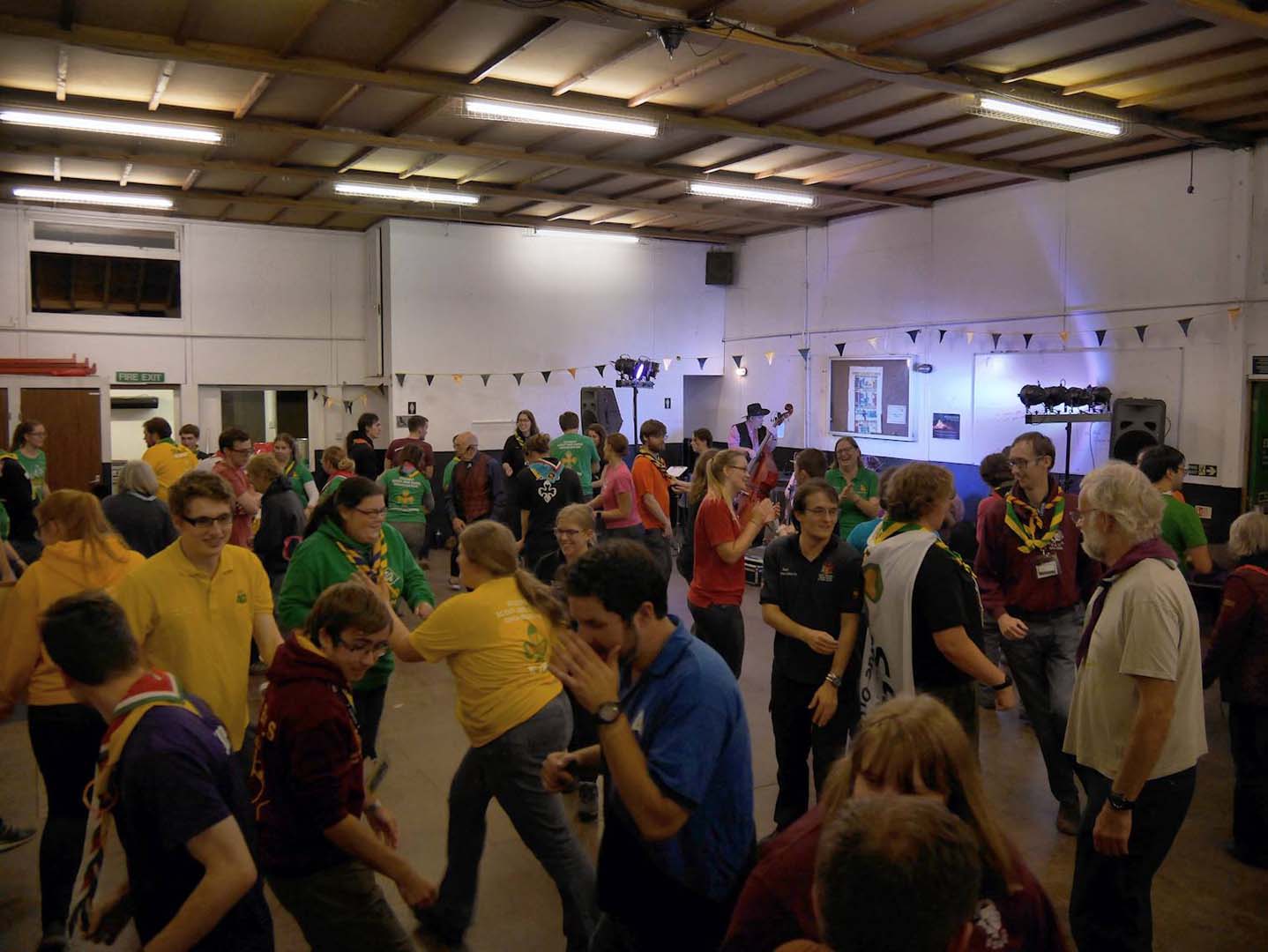 As the day went on, SAGGA kindly provided Pimms on the Grass, while we found out if SSAGO had talent, who the task masters were and whether SSAGOers playing quidditch could ever find the Snitch darting around campsite. Following dinner, the evening kicked off with the ceilidh and the silent disco, sometimes evening mixing and both with the usual levels of dancing abilities from SSAGO members. Those not dancing could be found around the campfire, or enjoying the games shows or just the joys of cheese and wine as the night fell and people moved to their tents after a busy day, or to the silent Cinema to see whether the Scouts could indeed beat the zombies. The giant SSAGO birthday card was passed around and soon filled up to capture all the people who SSAGO itself had captured over the years.