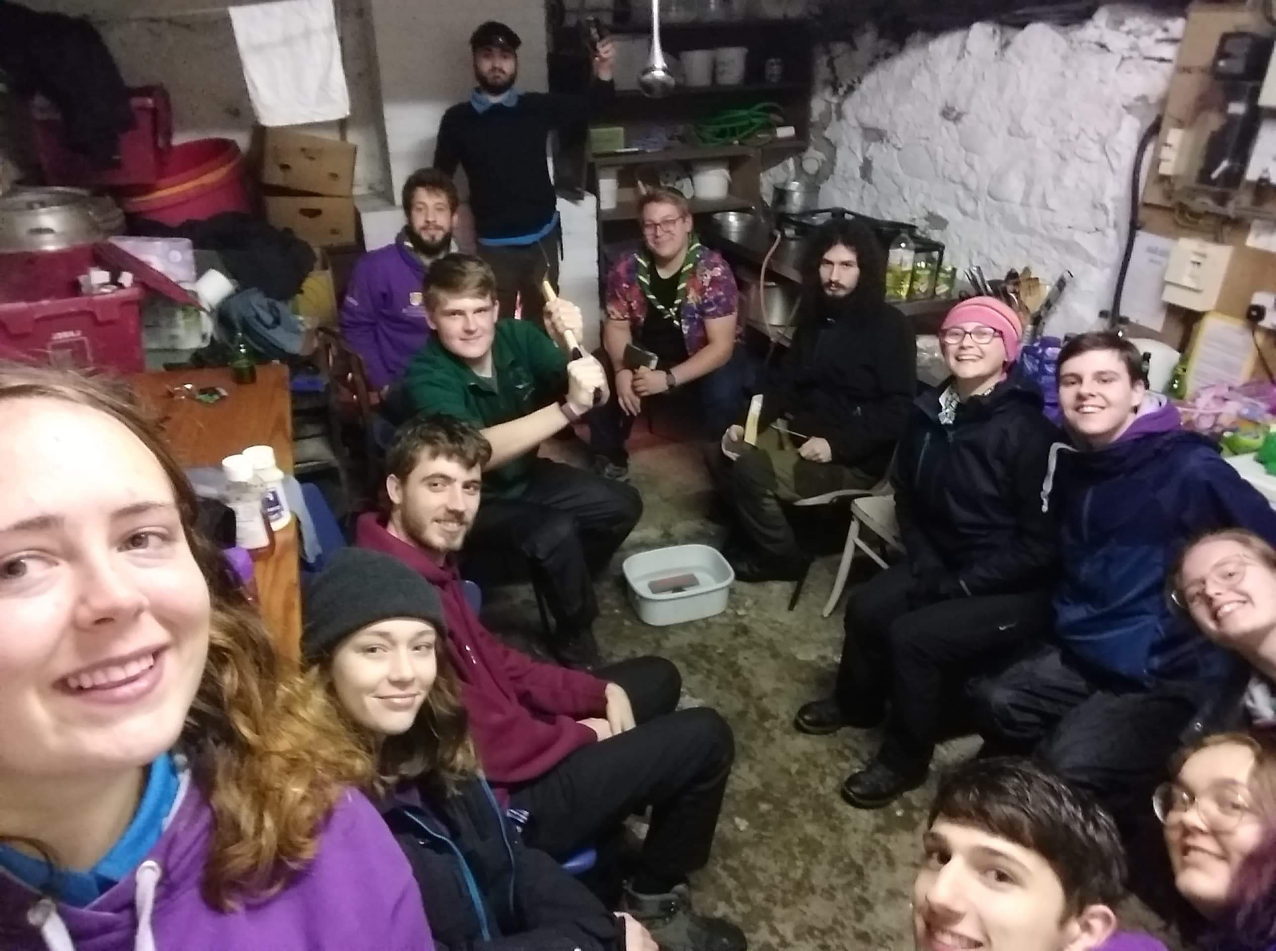 South Wales Freshers Camp was held from November 1st- November 3rd, at Silver Cross Scout Campsite near Swansea. Members new and old from SUSGS (Swansea), Aberystwyth, and University of South Wales (USW) came together for what was planned to be a fun typical Scout camp, with hikes, campfires, and outdoor activities on the agenda. However, this is Wales in Autumn, so instead we got a full weekend of nearly sideways rain, and a lodge full of pots and pans on the floor. This didn't stop us though, so we just spent the whole weekend making friends with each other, playing games, and generally drinking the night away. (Maybe to much drinking in the case of certain Swansea members, who I won't name, but who will live with the new traditional Mask of Shame until the next camp for his efforts.) Overall, we managed to make the best of the bad weather, and although we didn't manage to hold any campfires, a 17 person game of Werewolf was just as loud and exciting anyway.