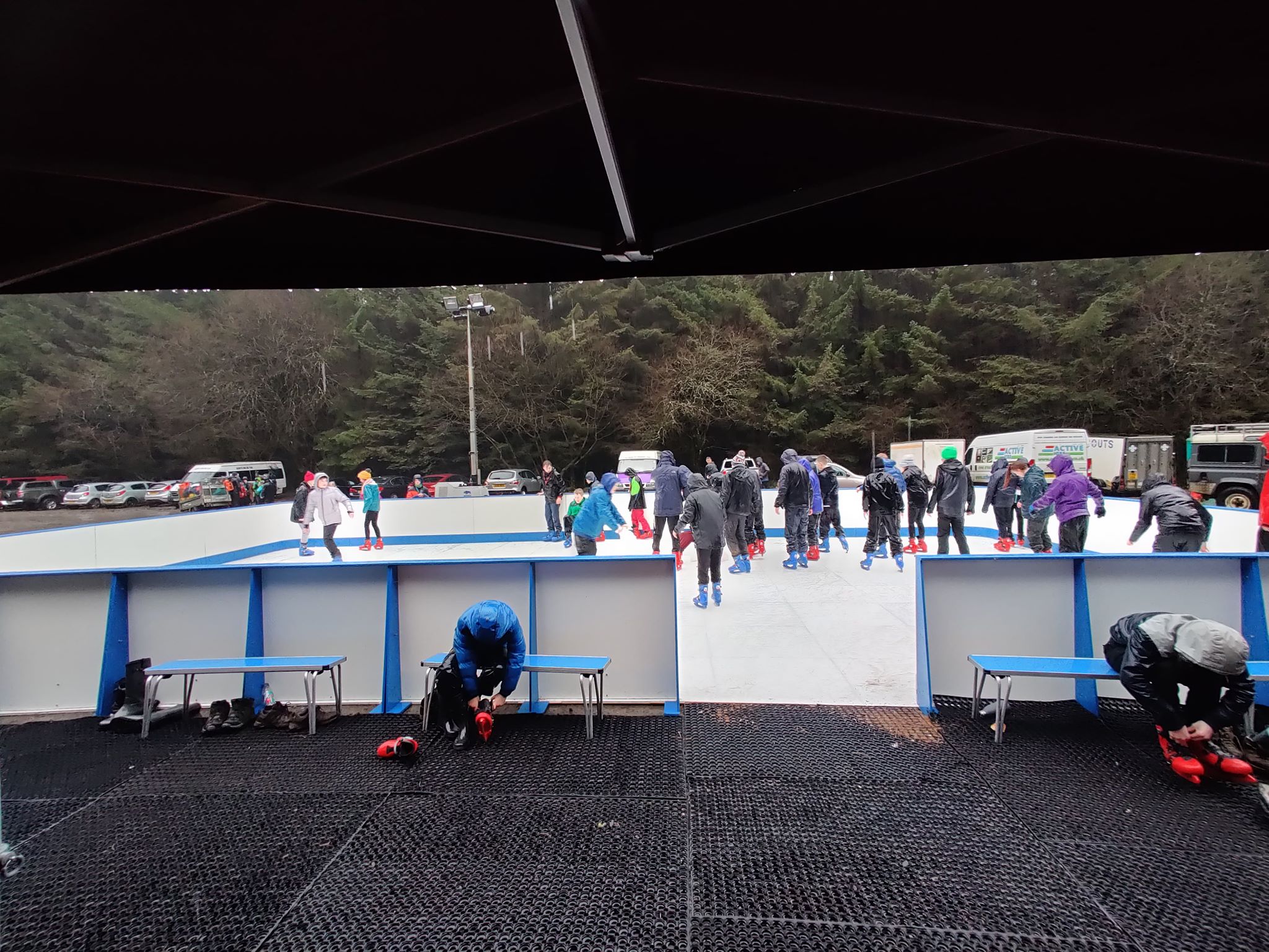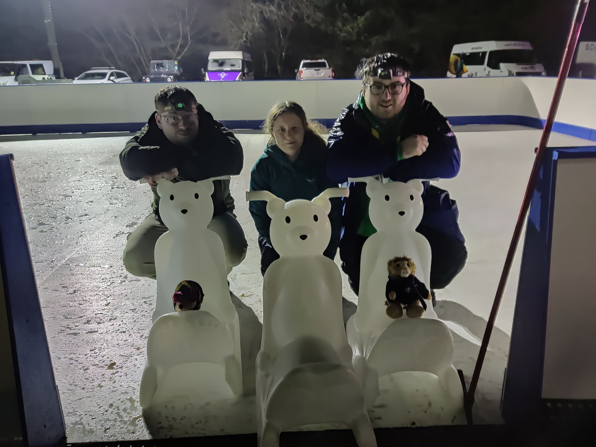 Saturday saw a sleep deprived team staffing the ice rink, handing out skates, supervising the skaters and the difficult task of removing the surface water from the outdoor rink, made even harder by the constant rain. In the evening once the rink was closed we managed to get out of the film screen and take part in the pub quiz, joined by some past Newcastle SSAGO members and then get some sleep, for the first time since arriving for 2 volunteers.