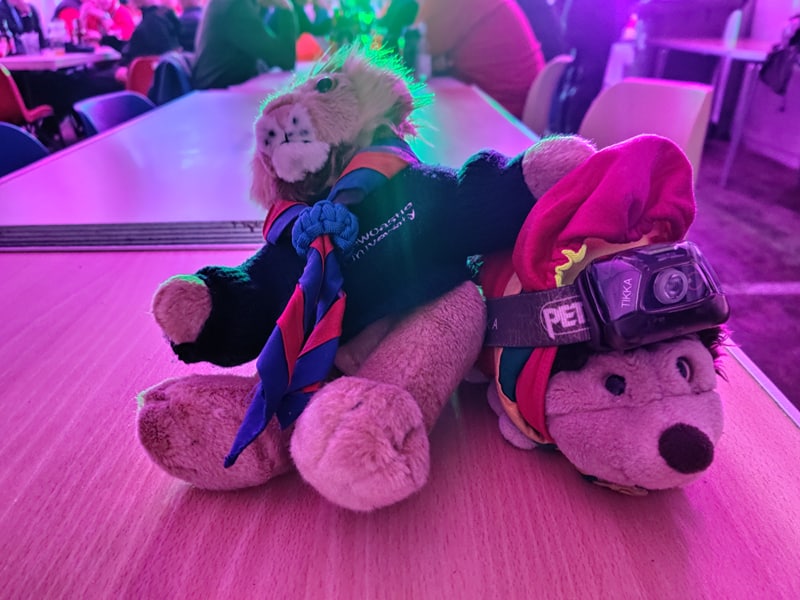 Our main activities on Saturday were running the Wintercamp challenge alongside the QSWP. Participants were tasked with 10 challenges, and if they completed all 10 they got a badge. There was a range of challenges, some involving inflatables and others testing scouting skills like knots. Some of the challenges were simple in premise but hard in reality, like a simple “pack a tent back in a tent bag” challenge, that only a few teams succeeded at all weekend. On top of that, every activity was scored, with the team that had the most points overall winning vouchers and goodies. Subsequently there was a big incentive for participants to try their best.