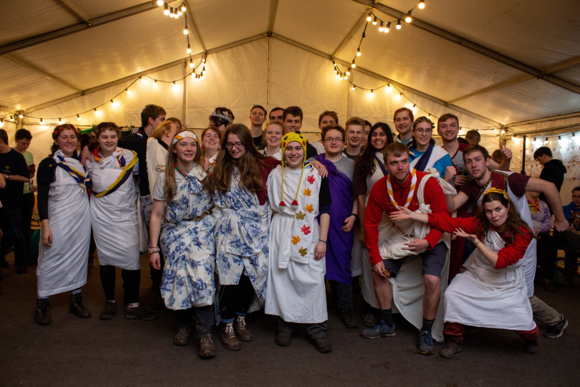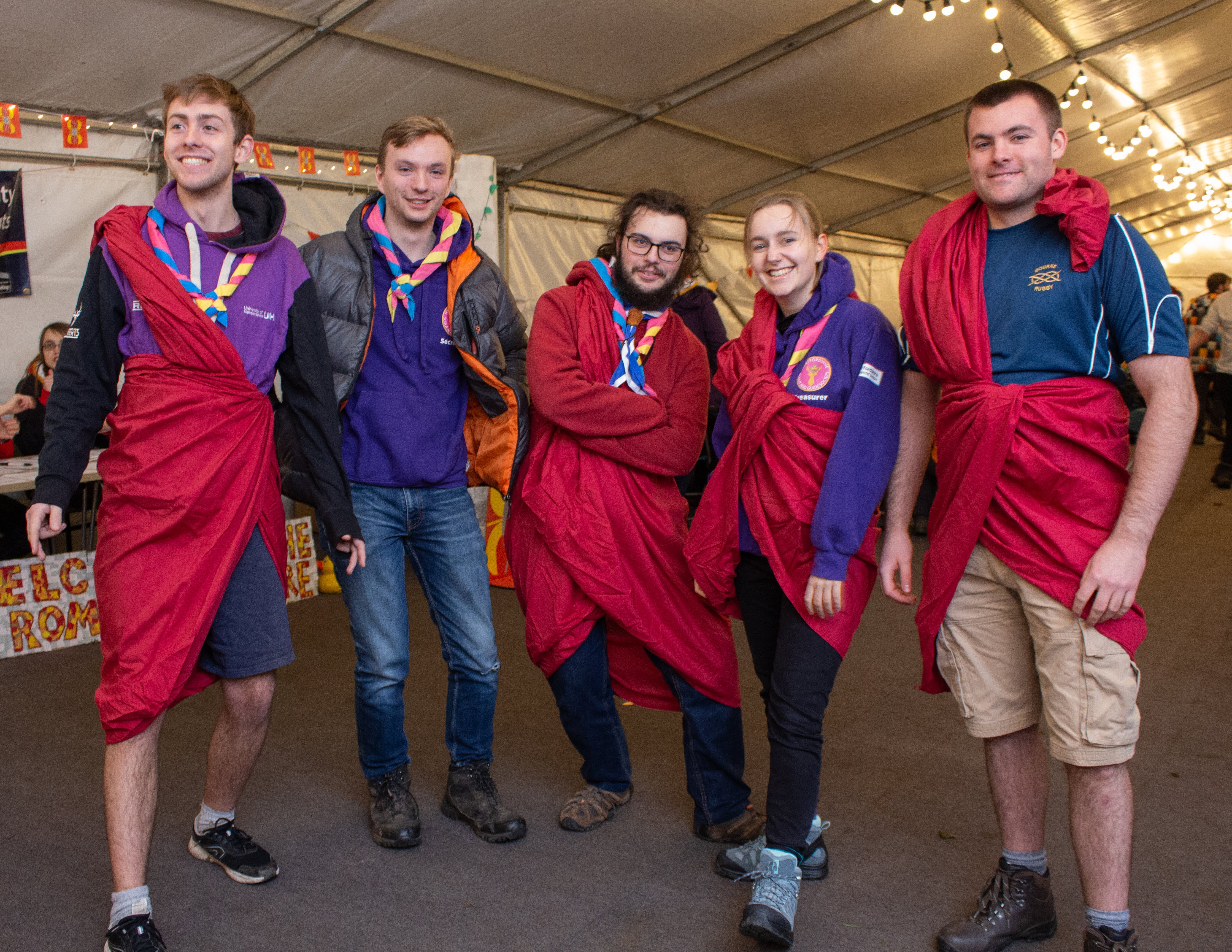The SSAGO army returned to site and were served fajitas on arrival (with all the trimmings!) and the marquee – otherwise known as the Forum – was alive once more. Reps even got to take their pudding (Swiss roll and custard) in with them to make the meeting more bearable! Those not suffering a fate worse than death (sorry exec, reps are long!), got to enjoy a ceilidh – with the additional challenge of doing it in their togas!