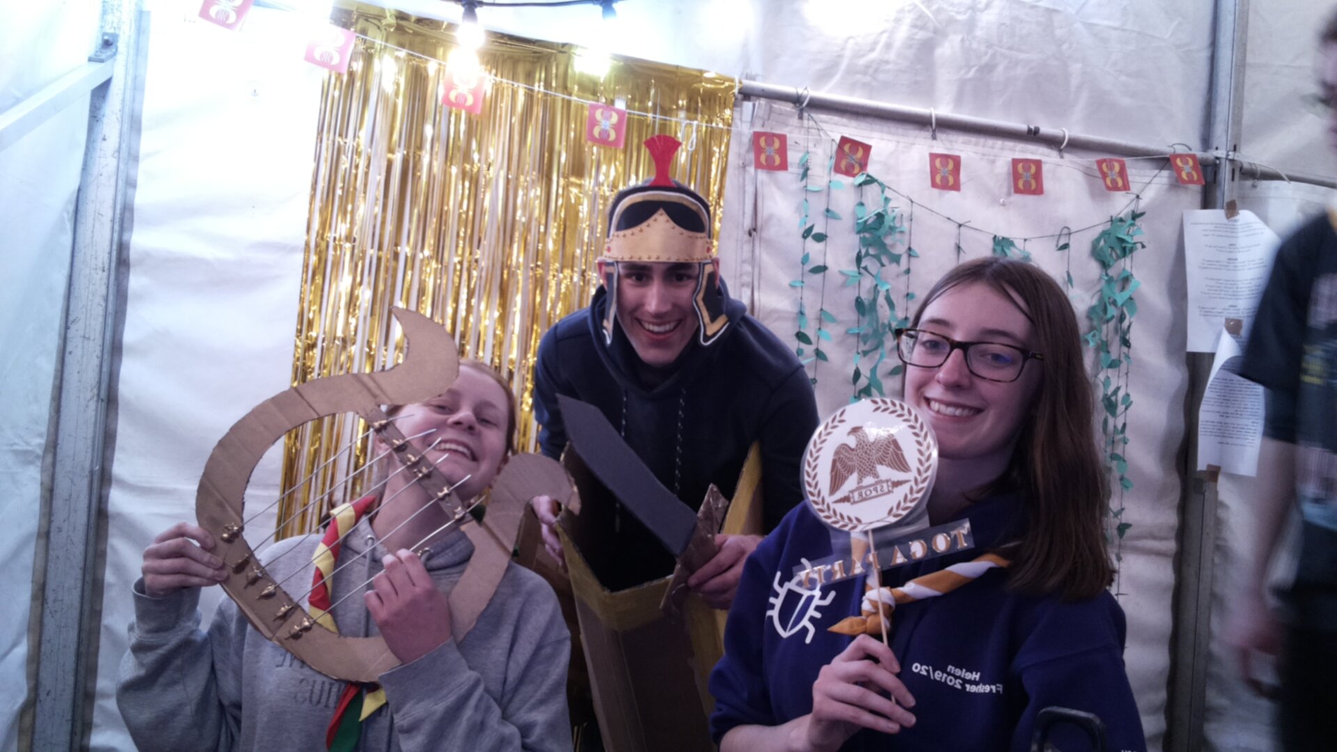 Thanks to Owen from UOBGAS and the previous craft weekend, there was even a photobooth in the marquee – with props and themed backdrop (think chariots, shields, swords, helmets and so on)