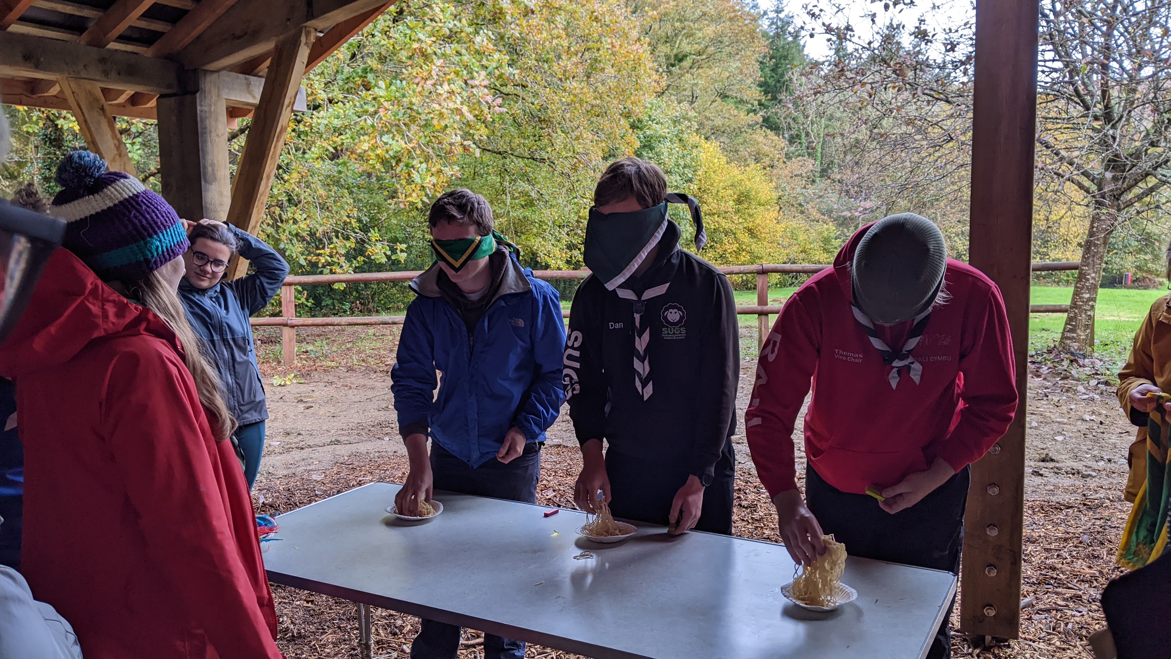 After a short craft break, it was time to “win lunch” by searching (with a blindfold) through bowls of mystery stuff – including spaghetti with oil, feathers and jelly – luckily there were no bugs available.