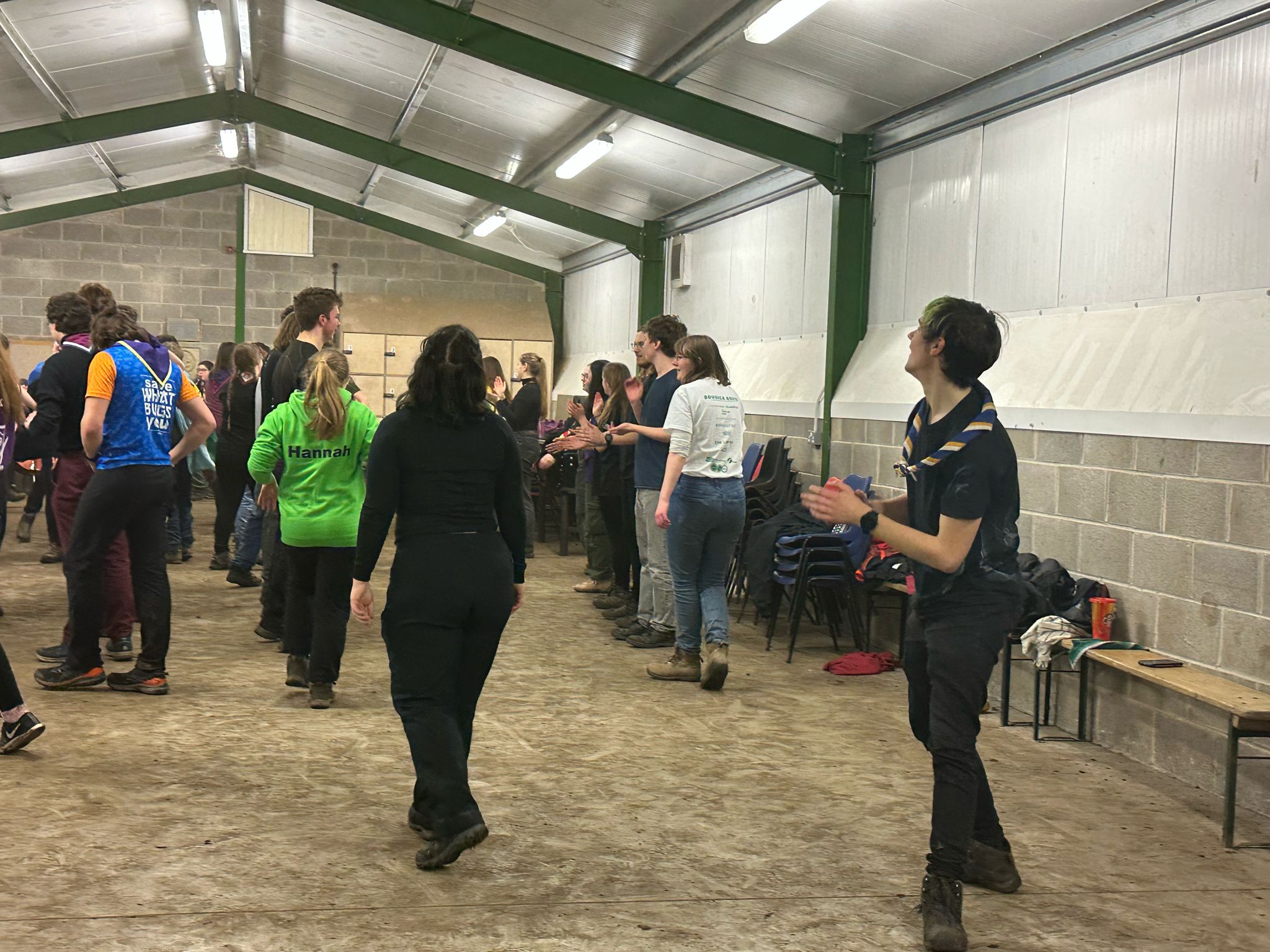 Once everyone was back onsite, we had a break before the spaghetti bolognese ("Supernatural Spag Bol") was served. Not long after food was served, the ceilidh began, with Sam from Caledonian Soc calling and Folk Soc providing the music. The ceilidh was split in two, so while half were dancing, the other half were at the campfire or relaxing and catching up with friends. At the end of the ceilidh, we all joined up on the arena to do a slightly muddy version of Auld Lang Syne.